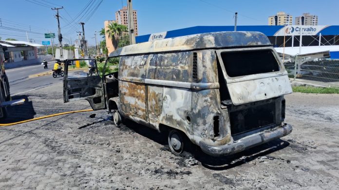Na manhã desta terça-feira (19), uma kombi branca foi completamente destruída por um incêndio na Avenida Presidente Kennedy, no bairro São Cristóvão, zona Leste de Teresina.
