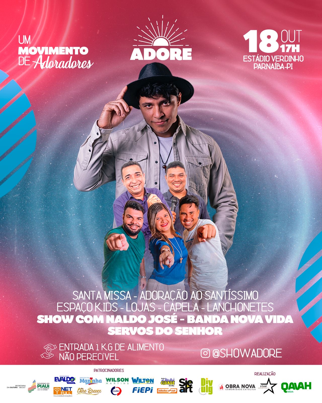 “A Conferência Adore é muito mais do que um encontro religioso. É um chamado à experiência viva com Deus. Queremos proporcionar momentos de cura, reconciliação e alegria espiritual, especialmente para os jovens, que muitas vezes buscam sentido e direção em meio aos desafios do mundo atual. Cada detalhe foi pensado para que o participante se sinta acolhido e tocado pelo amor de Cristo. Também queremos valorizar a cultura local e mostrar que a fé pode caminhar junto com a arte, a música e a partilha. O Adore é um movimento que vem crescendo a cada edição, e nossa expectativa é que Parnaíba se torne um polo de evangelização e espiritualidade para todo o Norte do Piauí”, destacou Renato Santos.